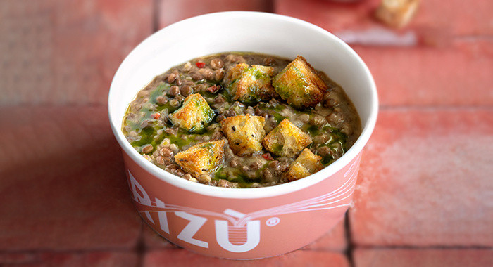 Zuppa di lenticchie, crostini e olio all'erba cipollina