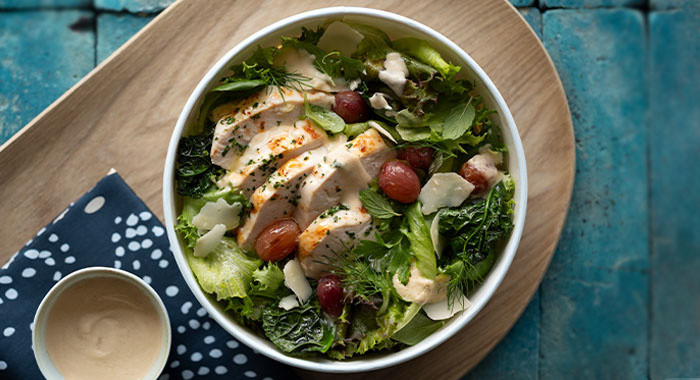 Pollo alle erbe, cavolo nero, uva + lattuga