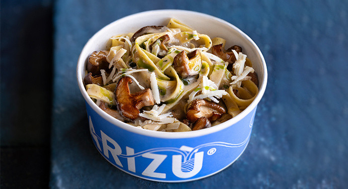 Tagliatella ai funghi, ricotta affumicata, olio all'erba cipollina