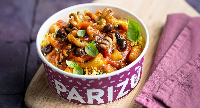 Seppioline al pomodoro + cous cous, patate, zafferano, erba cipollina
